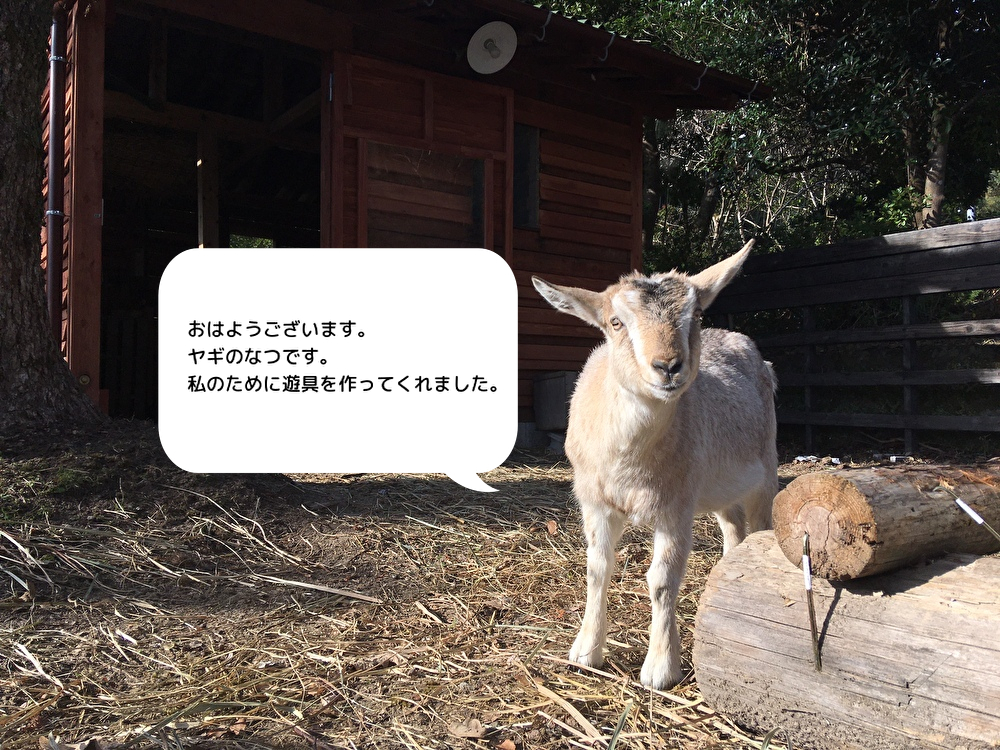 ヤギブログヤギのなっちゃんのために遊具が完成しました 先日、完成したヤギーズの遊具😀なっちゃん、気をつけて遊んでね😀お天気が良い日など、なっちゃんは上まで登って木のコケ???なんだかわからないけど食べてますよ♪ブログ村に参加しています。応援のクリックをしていただけるとヤギたちが大喜びします😀2021.01.08ヤギブログ新着記事